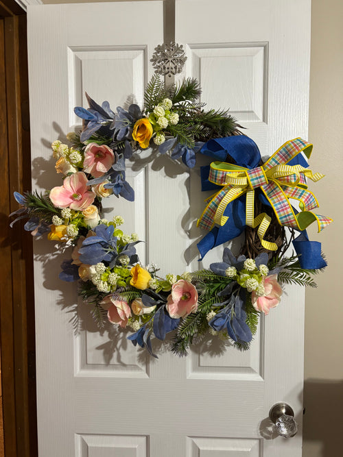 Tan and Purple Deco Mesh Spring Rabbit Wreath